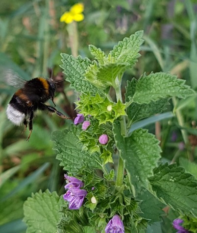 Wildpflanzen wachsen im naturnahen Garten und bieten Insekten Nahrung. |