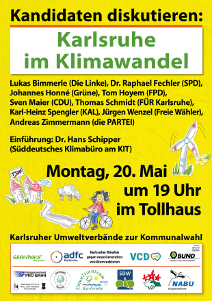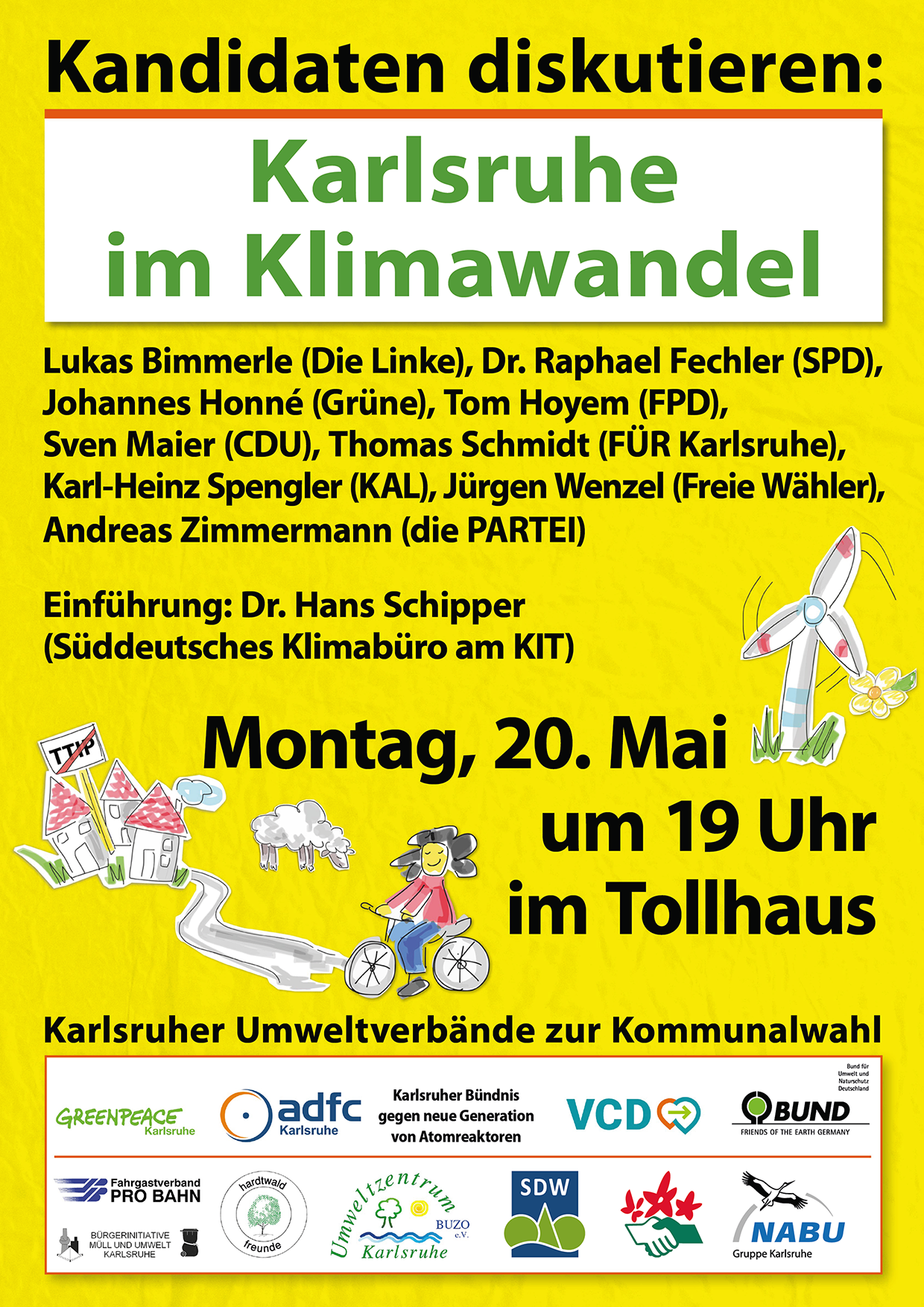 Die Fragebogenaktion "Wahlprüfsteine Verkehr, Karlsruher Umweltpolitik, Energie und Atomreaktoren" wird von folgenden Verbänden getragen: