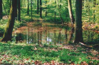 | Im Frühjahr wandern tausende von Braunfröschen, Erdkröten und Molchen zum Ablaichen ins Weingartener Moor, ... |