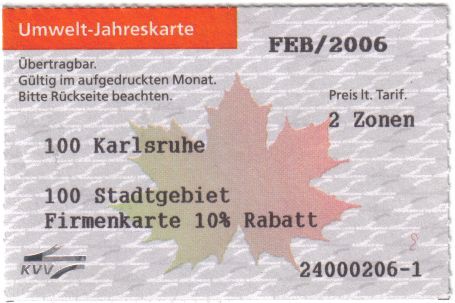 Nachdem im Verkehrsverbund Stuttgart VVS schon einige Jahre zuvor ADAC und VCD verbilligte Jahreskarten für ihre Mitglieder anboten, zog unser Karlsruher Verkehrsverbund KVV aufgrund der dortigen guten Erfahrungen nach und ermöglichte auch dem ADAC, günstige Jobtickets anzubieten. Daher „können wir als Verkehrsclub für Umweltbewusste nicht abseits stehen“, wie wir damals an den KVV schrieben. Wie schon der Stuttgarter VCD waren auch wir auf Kooperationspartner angewiesen, um gemeinsam die Mindestbestellmenge von damals 300 Karten zu erreichen. Wir taten uns, dank damals enger Kontakte, mit dem Carsharing von stadtmobil zusammen sowie mit BUZO und BUND. Weitere Vereine wollten ein Jahr später aufspringen. VCD und BUZO bekamen 52 Bestellungen zusammen, darunter 11 Neumitglieder, die Aktion hat sich also schon von daher gelohnt! Insgesamt kamen 2000 rund 130 Karten zusammen, man drückte beim KVV die Augen zu ... Wir versprachen, alle zusammen in den folgenden Jahren mehr Bestellungen zu liefern. Zunächst boten wir die Aktion 1x pro Jahr an ab jeweils 1. Mai, passend zum damaligen Zeitpunkt der Tariferhöhungen zum Juni, um noch für ein Jahr die günstigen Preise „mitzunehmen“. 2005 verschob sich die „Erhöhungsrunde“ leider zunächst auf April, 2008(?) auf Jahreswechsel. Ab 2007 konnten wir die Karten dann 4x pro Jahr anbieten.