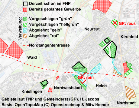 Das Engagement der Stadt Karlsruhe zum Schutz der letzten stadtnahen Freiflächen schien mit der lobenswerten Einrichtung des Landschaftsschutzgebiets Gießbachniederung / Im Brühl bei Grötzingen ein Ende gefunden zu haben. Zwischen Neureut, Neureut-Heide und Nordweststadt gibt es einen Grüngürtel, der stark gefährdet war und möglicherweise immer noch bedroht ist: Zum einen sollte dort die Nordtangente gebaut werden und zum anderen gibt es immer mehr Begehrlichkeiten für den Wohnungsbau. Doch wir brauchen diese Freiflächen aus vielerlei Gründen.