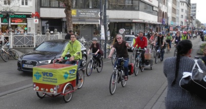 Ein Glanzpunkt war der Vortrag von Heinrich Strößenreuther, „Verkehrsrebell im schwarzen Anzug“ (DIE ZEIT), Deutschlands bekanntester Fahrrad-Aktivist und Mitinitiator des Volksentscheid Fahrrad in Berlin. Seine These als Hilfe für Politiker, die Gutes wollen, aber sich gegen die Autolobby nicht trauen: Wir müssen dafür sorgen, dass sie mehr Angst vor Radfahrern als vor Autofahrern haben. Wenn sie z. B. bei einem Antrag zur Reduzierung von Parkplätzen scharfen Gegenwind bekommen, brauchen sie unsere Unterstützung durch eine Soli(daritäts)-Demo.
