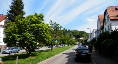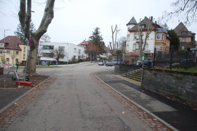 | Kreuzung mit Villen vor der Talstation (Treppe rechts); Foto: Hero Gnam | |