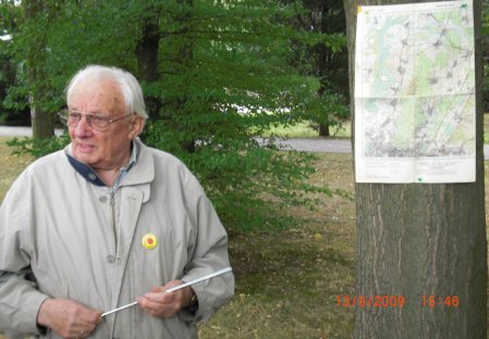Wegen seiner Augenerkrankung war er zunehmend eingeschränkt, nahm aber auch hier den Kampf auf. Er konstruierte an seinen Rollator einen „Köcher“ für Blinden- und Gehstock, mit dem er auch noch die Straßenbahn benutzen und selbständig zu Vorträgen und Veranstaltungen fahren konnte. Ich durfte ihn auch schon mal zum Arzt oder zu besonderen Plätzen in „seinem“ Hardtwald fahren. Später habe ich ihn immer wieder regelmäßig besucht, um ihm Artikel aus dem aktuellen Heft u&v vorzulesen.