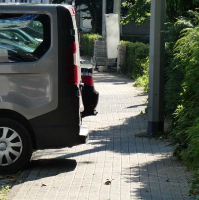 Die Frage „Darf der das?“ bringt ein weiteres Problem zu Tage, sofern es sich um Gehwegparken handelt. Egal ob per Schild oder, wie in Karlsruhe oft, per weißer Linie: Halb oder ganz auf dem Gehweg parken dürfen nur Fahrzeuge mit einer zulässigen Gesamtmasse von 2,8 Tonnen! Das kann schon für größere SUV ein Problem werden, denn die heutigen Führerscheine sind auf eine zulässige Gesamtmasse von 3,5 t ausgelegt. Das Ausreizen dieser Grenze ist beliebt und bei vielen modernen Fahrzeugen zu finden (beim o. g. „Bulli“ noch nicht). Für E-Autos mit schwerem Akku wird gerade eine EU-weite Anhebung der Pkw-Führerscheingrenze auf 4,25 t diskutiert! Gehwege sind aber nicht auf so schwere Fahrzeuge ausgelegt und gehen daher mit der Zeit kaputt ... Übrigens: „Zulässige G.“ heißt, dass nur Ladung ausladen nicht hilft.