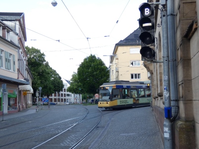 | Dort kommt aber an der Kreuzung die Bahn um eine unübersichtliche Kurve, die Busse und Bahnen müssen weit davor warten (weißes B), Autos würden dort nur stören; Fotos: Heiko Jacobs |