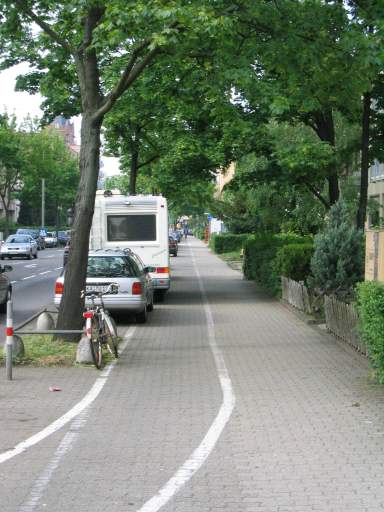 | "Kaum Gefährdung durch parkende Autos entlang der Teststrecken mit getrennten Radwegen" (die Tester hatten wohl Glück, auf vielen Karlsruher Straßen sieht das ganz anders aus, weil sich das Amt für Bürgerservice und Sicherheit nicht darum kümmert) | |