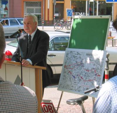 Am 8. Juni 2006 wurde die neue Cityroute Nord vom OB Heinz Fenrich offiziell eröffnet. Sie ist das erste sichtbare Ergebnis des Projektes “Fahrradfreundliches Karlsruhe”, dass von Gemeinderat und Radlerforum unter Leitung von BM Ulrich Eidenmüller in Zusammenarbeit mit ADFC und VCD beschlossen wurde, u&v berichtete mehrfach.