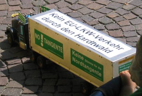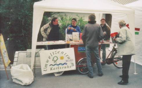 Immer mal wieder aktiv vor Ort: die drei Verbände BUZO, PRO BAHN und VCD. Rechts zu sehen ein gemeinsamer Stand bei der Eröffnung der Nordstadtbahn am 27.5.06 (s. S. 10), ein BUZO-Stand zum Tag der Umwelt am 8.6.06 , ein Foto der Demonstration gegen die Nordtangente am 17.5.06 von div. Verbänden und Bürgern darunter der “Lkw” eines VCDlers mit den neuen Aufklebern (s. Rückseite).