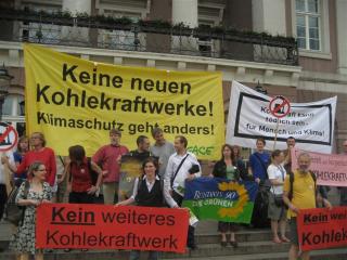Der Neubau des Kohlekraftwerks Karlsruhe ist in vollem Gang. Eine vorzeitige Baugenehmigung des Regierungspräsidiums Karlsruhe und die nun vorliegende endgültige Genehmigung lassen den Kampf der Kraftwerksgegner gegen die Kohleverbrennung und für eine umweltfreundlichere Erdgasvariante als nunmehr aussichtslos erscheinen. Als letztes Mittel soll eventuell der Rechtsweg beschritten werden. Die Argumente für und wider sind vielfach in der Presse und auch im umwelt&verkehr diskutiert. Hier und auf S. 2 sollen daher nur noch einige Bilder die Aktionen gegen das Großkraftwerk dokumentieren.