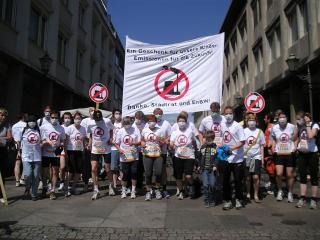 | Mit Protest-T-Shirts gegen das geplante Kohlekraftwerk der EnBW bekleidet ging eine Gruppe von Läufern bei der Badischen Meile am 3.5.08 an den Start. Foto: Andreas Brass |