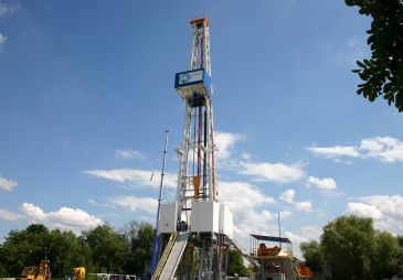 | Links: Mit einem Bohrturm aus der Erdölindustrie wurden die Bohrungen durchgeführt |