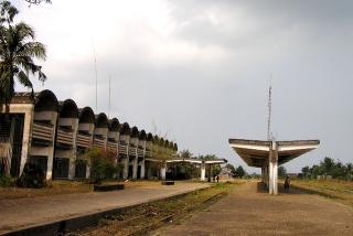 Mit Dampf wurde das letzte Mal 1987 gefahren! Es gibt bei den Zügen keine durchgehende Bremsleitung mehr, sie ist defekt. Auf jedem dritten oder vierten Wagen sitzt ein Bremser. Und auch der Bahnhof von Sihanoukville hat so seine Geschichte: Er ist eine sehr moderne, für die dortigen Klimaverhältnisse optimale aber unvollendete und inzwischen leicht heruntergekommene Betonkonstruktion. Er wurde von der Bundesrepublik Deutschland Anfang der sechziger Jahre in Form eines Entwicklungshilfeprojekts angefangen und fast vollendet. Doch plötzlich unvermittelt wechselte die kambodschanische Regierung ihre Ideologie und schwenkte zur DDR um. Sofort stellte die BRD natürlich ihre Entwicklungshilfe ein — und so sieht der Bahnhof heute immer noch aus! Er ist größtenteils unbewohnt, weil der Innenausbau nicht stattgefunden hat, und eine Zufahrtsstraße gibt es auch nicht.