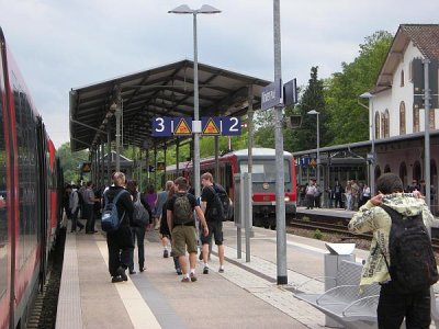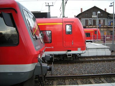 Der Rheinland-Pfalz-Takt wurde im Zuge der Bahnreform 1994 eingeführt. Trotz beschränkter Finanzen wurde flächendeckend ein Zugverkehr mindestens im Stundentakt an allen 7 Wochentagen mit optimierten Umsteigemöglichkeiten an den Knotenbahnhöfen eingeführt. Viele Strecken konnten vor der Stilllegung bewahrt werden und andere zuvor von der Deutschen Bundesbahn „mit Erfolg“ (so ein hoher Bahnbeamter) stillgelegte Strecken wieder eröffnet werden. Die Zahl der Fahrgäste hat sich mehr als verdoppelt und viele Menschen in Rheinland-Pfalz sind heute ohne Auto mobil. Zu den erfolgreichsten Strecken mit inzwischen einer Vervierfachung der Fahrgäste gehört die Strecke Neustadt — Karlsruhe. Probieren geht über studieren. Wer aus dem Großraum Karlruhe die Vorzüge des Rheinland-Pfalz-Taktes erleben und den Pfälzer Wein genießen möchte, kann das bequem tun: mit dem schnellen RE nach Neustadt, Karlsruhe Hbf ab zur Minute 7 oder mit der Stadtbahn S 5 zum Bahnhof Wörth und weiter mit dem RE zur Minute 17. Möglich ist auch die RB, in Karlsruhe Hbf ab zur Minute 37 bzw. im Bf Wörth ab zur Minute 52. Für kürzere Strecken (bis Landau) und den gesamten Kreis Südliche Weinstraße genügen die Fahrkarten des KVV. Für große Strecken bis nach Dahn und das gesamte Saarland benutzen Sie das Rheinland-Pfalz-Ticket, das auf der DB-Strecke ab Karlsruhe Hbf gilt.