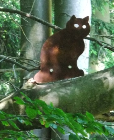Original Herrenalber Wildkatze auf einem Baum am Wildkatzenpfad