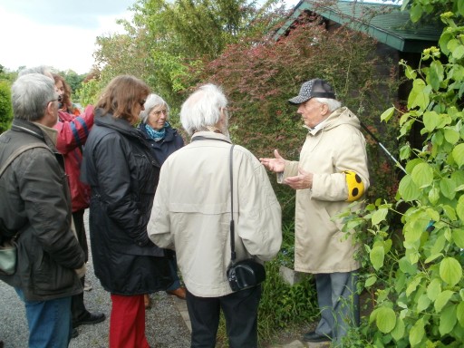 Bei der BUZO-Tour „In Wilhelms Garten“ am 24. Mai führte unser Ehren- und Gründungsmitglied Wilhelm Knobloch die Teilnehmer über verschiedene Stationen in der Waldstadt bis zu seinem Garten in der Kleingartenanlage Geroldsäcker. Wilhelm Knobloch erläuterte anhand praktischer Beispiele, mit welchen teils einfachen Mitteln Natur- und Klimaschutz im städtischen Bereich verwirklicht werden kann. So dienen Nadelgehölze zwischen Laubbäumen und dicht bewachsene Baumscheiben zahlreichen Tierarten als Lebensraum und Versteck und verbessern die Luftqualität und das Kleinklima. Mit dem Anbringen von Nistkästen für Vögel, Insektenhotels und Fledermauskästen in Vorgärten, Gärten und an Häusern kann im Prinzip jeder zum Naturschutz beitragen. Konsequent praktiziert Wilhelm Knobloch Arten- und Klimaschutz auch in seinem Kleingarten, was ihm viel Ärger mit dem Kleingartenverband eingebracht hat. Angesichts des anhaltenden Lebensraumverlustes für viele Tierarten und den Herausforderungen durch den Klimawandel wäre es wünschenswert, wenn die Vorgaben und Regelungen für Kleingärten entsprechend angepasst werden. So sollten künftig ökologische Oasen wie in Wilhelms Parzelle auch ohne gerichtliche Auseinandersetzungen möglich sein.