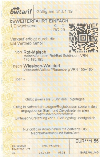 Speziell aufpassen muss man beim VRN (Verbund Rhein-Neckar). Dieser erstreckt sich über Baden-Württemberg hinaus, wo die bw-Weiterfahrt nicht anwendbar ist, wohl aber die DB-Weiterfahrt. Hier muss man an den DB-Automaten gleich am Anfang den richtigen Einstieg wählen. Sonst bekommt man durchaus auch für Strecken innerhalb des bw-Tarifgebiets (zum Beispiel Bad Schönborn — Heidelberg) den DB-Weiterfahrt-Tarif verkauft zum höheren Preis, ohne Verbundgültigkeit am Zielbahnhof und ohne die Rückgabemöglichkeit bis zum Tag vorher.
