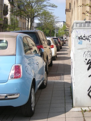 Das ist von der Regelbreite 2,50 m in den „Richtlinien für die Anlage von Stadtstraßen“ weit entfernt, aber es geht wenigstens in die richtige Richtung. Es dauerte mehrere Jahre, bis für alle Stadtteile der Großstadt mit großem Aufwand festgelegt war, wo Parkmarkierungen aufgesprüht wurden und wo eben nicht. Erst danach wurde das „faire Parken“ zum Beginn dieses Jahres „scharfgeschaltet“, also bei Zuwiderhandlungen gebührenpflichtige Verwarnungen verhängt.