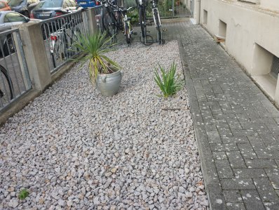 Ein bisschen besser sieht es aus bei Neubauvorhaben. Hier können wir zumindest hoffen, dass durch die Zuständigkeit des Bauordnungsamtes die Anlage von neuen Schottergärten verhindert wird. Ein schwacher Trost. Denn die Stadt setzt ganz auf Bewusstseinsbildung durch Beratung und den Ausbau von Förderprogrammen — da ist abzusehen, dass wir noch sehr lange viel zu viele Schottergärten in Karlsruhe in Kauf nehmen müssen.