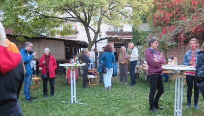 Knapp 30 Personen, auch aus dem Freundes- und Symphatisantenkreis, haben sich zu unserer Jubiläumsfeier eingefunden. In lockerer Stimmung wurde an Vergessenes sich wieder erinnert, Damals und Heute kommentiert, Anerkennung gespendet für das, was ein kleines Grüppchen Aktiver über die Jahre geleistet hat. Ein Fotoshooting gab es auch noch. Der neue Vorstand wurde in Szene gesetzt, von Laub in herbstlichen Farbtönen gekrönt.