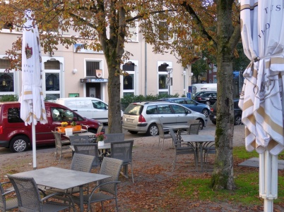 | Leseecke Prinz-Max-Palais, dahinter Außengastronomie |