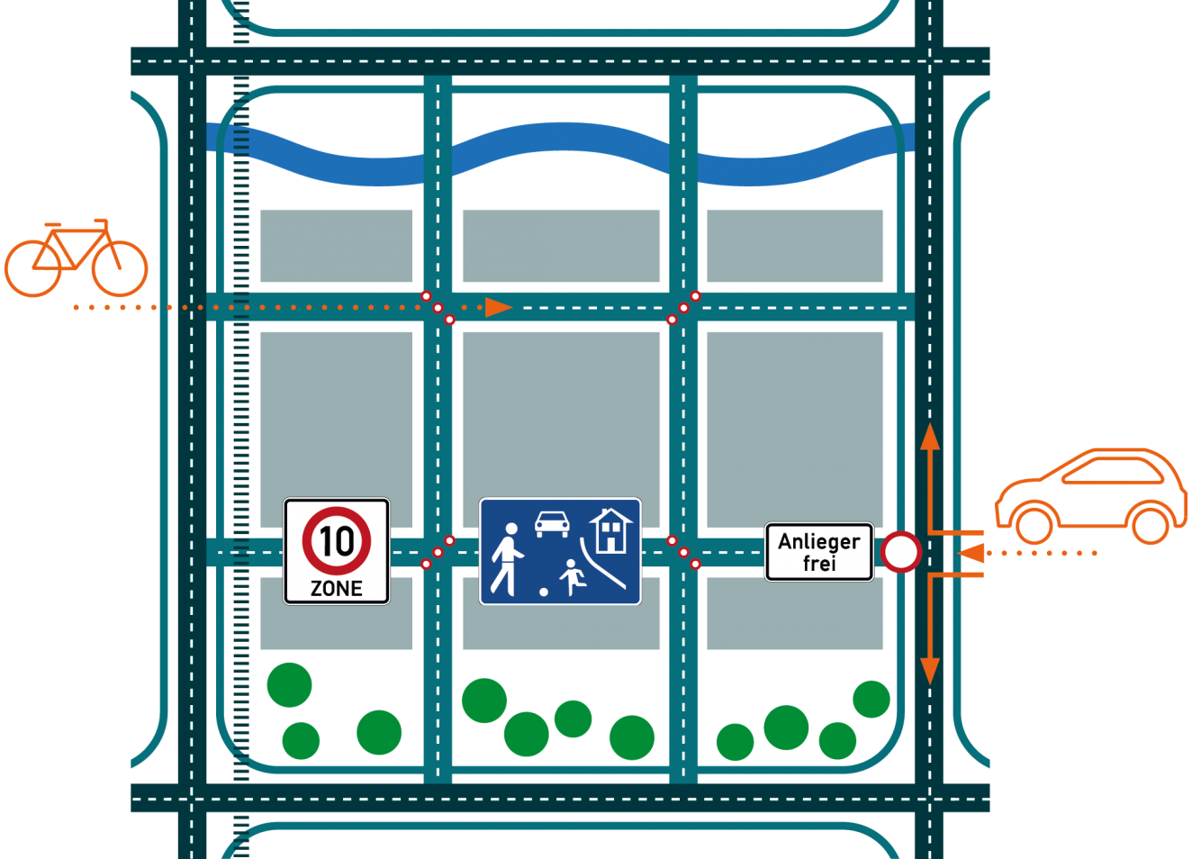 Beispielhaftes Kiezblock-Konzept in der alten Südstadt;