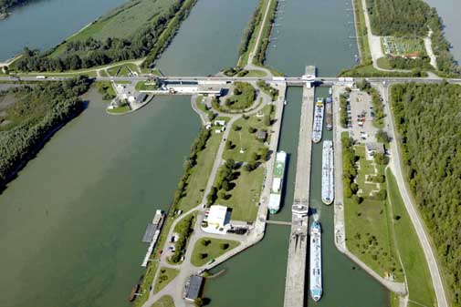 | Staustufe Iffezheim aus der Luft. Foto Fabry |