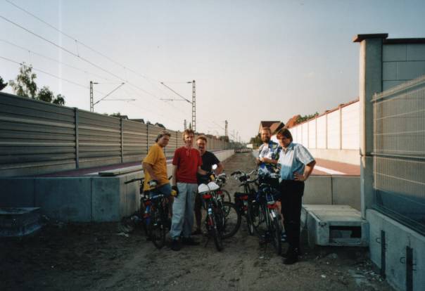 Einer muss das Ziel kennen und dann kann's losgehen. Meistens aber wissen mindestens zwei den besten Weg dorthin, dann muss natürlich erst einmal diskutiert werden. Gut, die Route ist gefunden, der Rädelsführer radelt voran. Erst durch den Schlossgarten zum Hardtwald, auf die Stutenseer Allee — immer geradeaus. Später geht's rechts ab durch eine Bahnunterführung nach Stutensee, ein ICE braust gerade vorbei — bewundernde Blicke folgen.