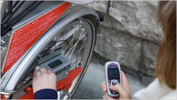 Wenn man dann spontan ein Rad leihen möchte, genügen ein Anruf vor Beginn der Fahrt und einer bei der Rückgabe. Das Fahrradschloss öffnet sich nach Eingabe einer vierstelligen Zahl, die am Telefon genannt wird. Hat man bei der Anmeldung die eigene Handynummer hinterlegt, kann man sich die Angabe der Kundennummer beim Ausleihen sparen. Bei der Rückgabe teilt man den neuen Standort und wieder einen vierstelligen Code mit. Diese Infos stehen übrigens auch auf den Rädern.