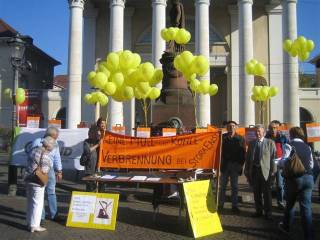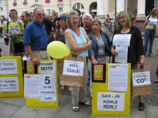 | Demo vor dem Karlsruher Rathaus am 17.07.07 gegen das geplante Kohlekraftwerk. Foto: Margarete Ratzel |