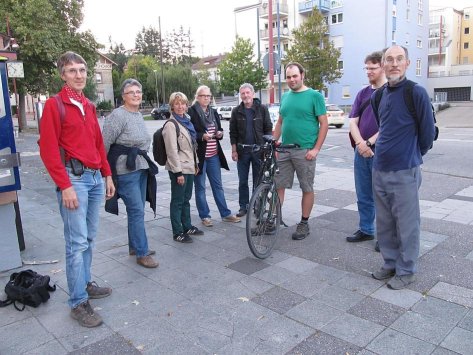Am 2. Oktober 2012 fand im Rahmen des monatlichen Aktiventreffens eine Exkursion in Bretten statt, um sich vor Ort ein Bild vom Zustand des Radwegenetzes zu machen. Damit wurde auch der Vorstandsbeschluss umgesetzt, einmal jährlich ein Treffen im Einzugsgebiet des Kreisverbandes durchzuführen. Nach Ettlingen und Bruchsal war nun Bretten an der Reihe, wo unser aktives Mitglied Erich Fey beheimatet und als Alltagsradfahrer mit den Gegebenheiten dort bestens vertraut ist. Mit kleiner Verspätung, die Karlsruher VCD-ler sind mit dem S4-Sprinter angereist, begann die Führung am Bahnhof. Externe Teilnehmer waren zwei engagierte Damen von den Grünen und ein ADFC-Mitglied, die alle über die Terminankündigung in der örtlichen Presse (Brettener Woche, BNN Bretten) zu uns gestoßen waren. Außerdem begleitete uns eine Redakteurin der BNN. 15 Stationen wurden zu Fuß begangen, die Erich Fey ausgewählt, fachkundig dokumentiert und kommentiert hat. Was wir dort gezeigt bekamen, hat die Karlsruher dann doch in Erstaunen versetzt und Aha-Effekte bei den Brettenern ausgelöst.