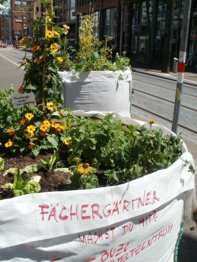 Aktuell sind es drei Orte, an denen engagierte KarlsruherInnen unter dem Namen Fächergärtner in der Erde graben, pflanzen und bewässern: Beim Marstallgarten in der Oststadt, beim Budo-?Club in der Weststadt und in den Big Bags auf der östlichen Kaiserstraße. Letztere werden als temporäre Begrünung während der Sperrung für die Straßenbahnen schon bald wieder verschwunden sein. Dagegen bieten die Flächen in der Ost- und Weststadt noch Raum für Erweiterung. Begeisterung und viel Lob von Passanten und AnwohnerInnen und eine gute Berichterstattung in den Medien zeigen, dass die gemeinschaftlich gepflegten Beete im öffentlichen Raum sehr gut ankommen. Doch die Probleme sollen nicht verschwiegen werden: Obwohl schon seit Mai 2013 an einem Vertrag gebastelt wird, auf dessen Unterzeichnung die Stadt besteht, konnte bis heute keine entsprechende Nutzungsvereinbarung getroffen werden. Die Gründe dafür liegen zum Einen in haftungsrechtlichen Risiken, die der BUZO drohen könnten. Außerdem wurden beim Marstallgelände Bodenkontaminationen mit PAK (Polyzyklische aromatische Kohlenwasserstoffe) fest gestellt, die eine gärtnerische Nutzung der Flächen eigentlich nicht ratsam erscheinen lassen. Auch das Gelände beim Budo-Club steht unter Altlasten-Verdacht. Leider sind Belastungen von städtischen Böden mit Schadstoffen aller Art ein verbreitetes Problem, was bei vielen Urban Gardening-Projekten dadurch umgangen wird, dass in Kisten, Säcken oder anderen Pflanzgefäßen gegärtnert wird. Es wirft aber auch Fragen über unseren Umgang mit dem Boden allgemein auf. Der Wert und die Schutzbedürftigkeit dieser so dünnen obersten Erdschicht, der wir unsere Lebensmittel verdanken, wird allzu oft vergessen oder missachtet und im wahrsten Sinne des Wortes mit Füßen getreten. Der sorglose Umgang mit Abfällen, Giften und Erdölprodukten in der Vergangenheit, eine jahrhundertelange intensive und kleinräumige Nutzung der städtischen Flächen und die Folgen der Bombardierung im Krieg haben dazu geführt, dass wir heute die Böden in der Stadt nicht mehr bedenkenlos nutzen können. Wir sollten daraus lernen und es künftig besser machen. Für die Fächergärtner wird das Problem zu lösen sein, indem essbare Pflanzen vorsorglich nur noch in Gefäßen mit eigener Erde kultiviert werden und alle Aktiven über die möglichen Belastungen des Bodens und daraus resultierende Verhaltensempfehlungen informiert werden. Bei aller Problematik sollten die vielen positiven Seiten des Projektes jedoch nicht vergessen werden. Durch das gemeinsame Gärtnern im öffentlichen Raum können wir zu einer Verbesserung der Lebensqualität in der Stadt beitragen, und diese Chance sollten wir nutzen und noch weiter ausbauen. Die Tatsache, dass das Karlsruher Projekt Fächergärtner als beispielhaft bei der Landesinitiative „Mittendrin ist Leben. Grün in Städten und Gemeinden in Baden-Württemberg“ ausgewählt wurde und dadurch in einer Ausstellung auf Tour durch das Land geht, sollte uns motivieren, weiter zu machen und in der nächsten Saison noch mehr Stadtteile ergrünen und blühen zu lassen. Informationen zur Landesinitiative unter www.mittendrin-ist-leben.de