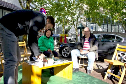 Der Park(ing) Day im September im Passagehof begann mit Verspätung. Zwei der drei dafür vorgesehenen Parkplätze waren trotz unmissverständlicher Beschilderung des Parkverbots für den Aktionstag zugeparkt. Die herbeigerufene Politesse sah sich nicht in der Lage, kurzfristig für Räumung zu sorgen. Erst wurden die Halter ermittelt und versucht sie anzurufen, dann der Fahrer in sämtlichen Geschäften samt Friseur in der Nähe vergeblich gesucht und anschließend das Verhältnismäßigkeitsprinzip so lange abgewogen, dass die beiden Falschparker annähernd eineinhalb Stunden nie in die Gefahr kamen, abgeschleppt zu werden. Dass sie dabei zugleich eine angemeldete Versammlung und damit eines der höchst eingestuften Grundrechte verhinderten, spielte bei der Abwägung des Ordnungsamts offenbar keine Rolle. Das „Grundrecht auf illegales Parken“ wurde höher eingestuft. Kein Wunder, dass man in Karlsruhe fast nie einen Abschleppwagen beobachtet.