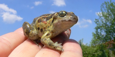 | Eine der v. Bauvorhaben betroffenen Arten ist die europarechtl. geschützte Knoblauchkröte; F.: J. Niederstraßer |