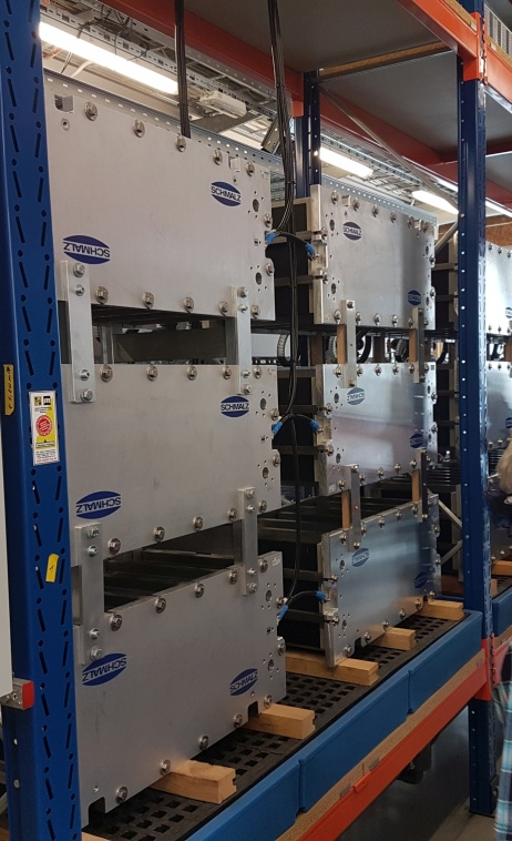 Im Erdgeschoss des Batteriegebäudes sind über 500 Wandlermodule in Regalen zu sogenannten Stacks angeordnet. Jeder Stack besteht aus 40 Zellen mit einer aktiven Gesamtfläche von 1400 cm². Da die Energieeffizienz der Stacks bei Nennleistung etwa 80 % beträgt, entsteht beim Entladen der Batterie nur geringe Abwärme.