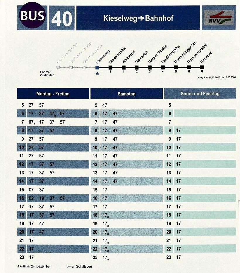 | Abfahrtsplan Linie 40 gültig bis 12. Juni 2004 |